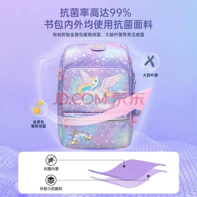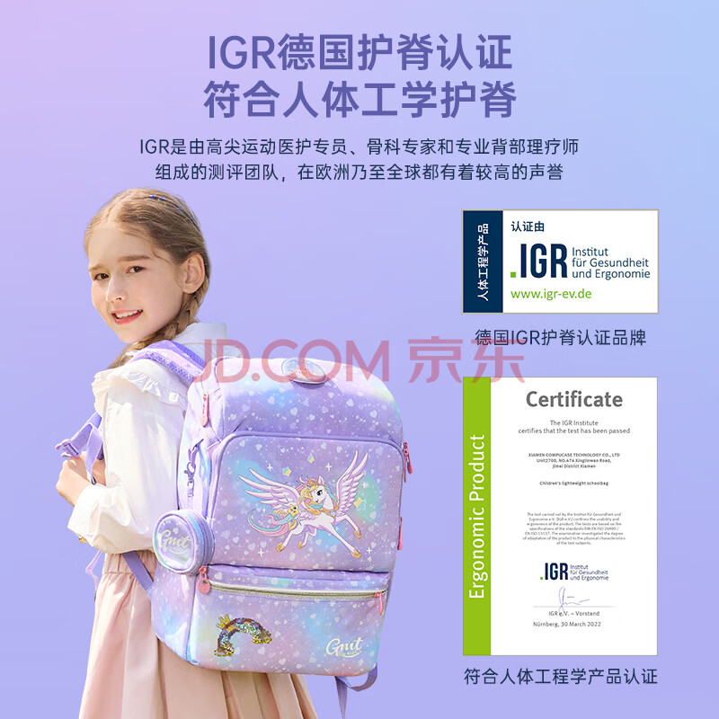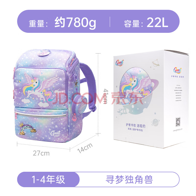 商品相册:Gmt for kids儿童书包小学生轻便护脊减负双肩包大容量礼物1-4年级男女独角兽第