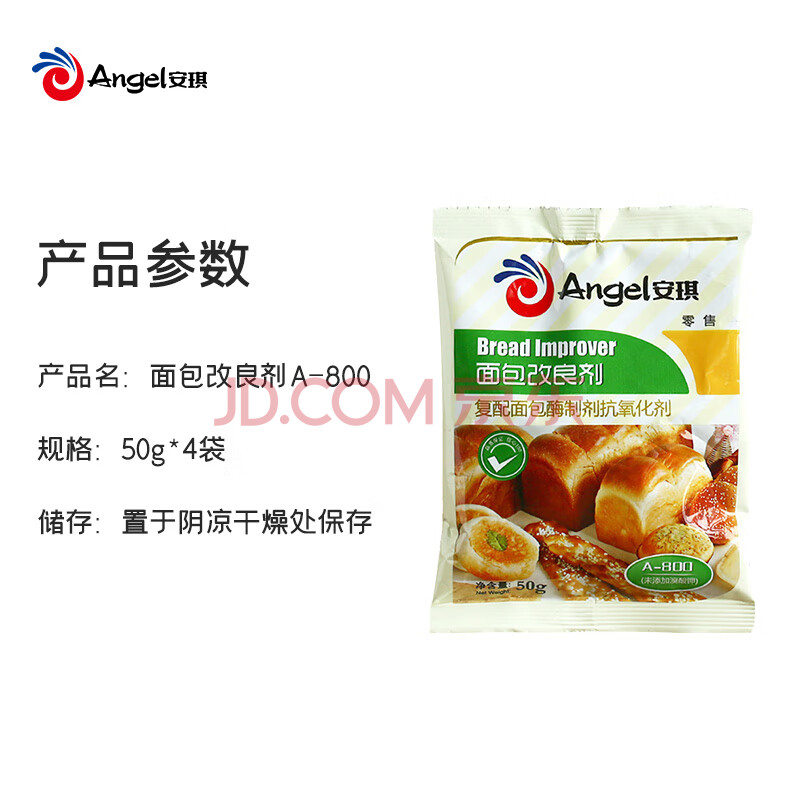 商品相册:安琪面包改良剂A800型家庭装50g*4袋 酵母伴侣面包膨松剂烘焙原料第