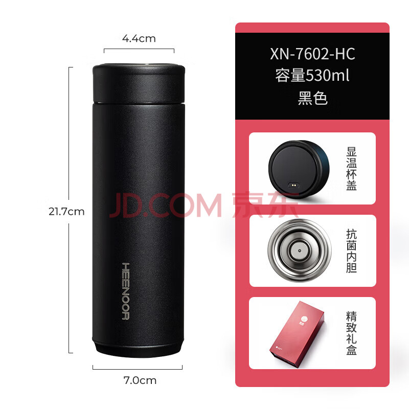 商品相册:希诺抗菌保温杯智能杯支持鸿蒙智联316L不锈钢水杯XN-7602HC黑色530mL第