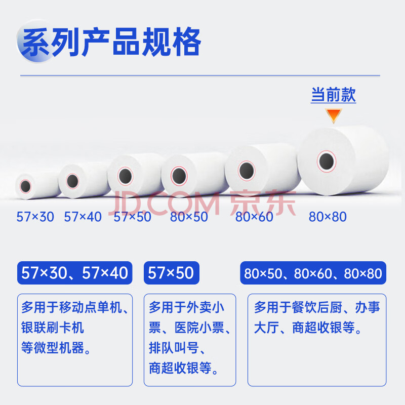 商品相册:得力(deli)(deli)80*80型60米*40卷 白令海热敏收银纸 京东外卖收银机打印纸 ZS131【适配80mm机器 801P等】第