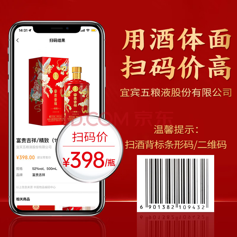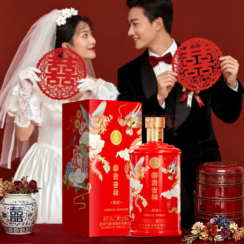 商品相册:五粮液股份 婚宴喜酒 富贵吉祥精致52度500ml*6瓶 固态法浓香型白酒礼盒第