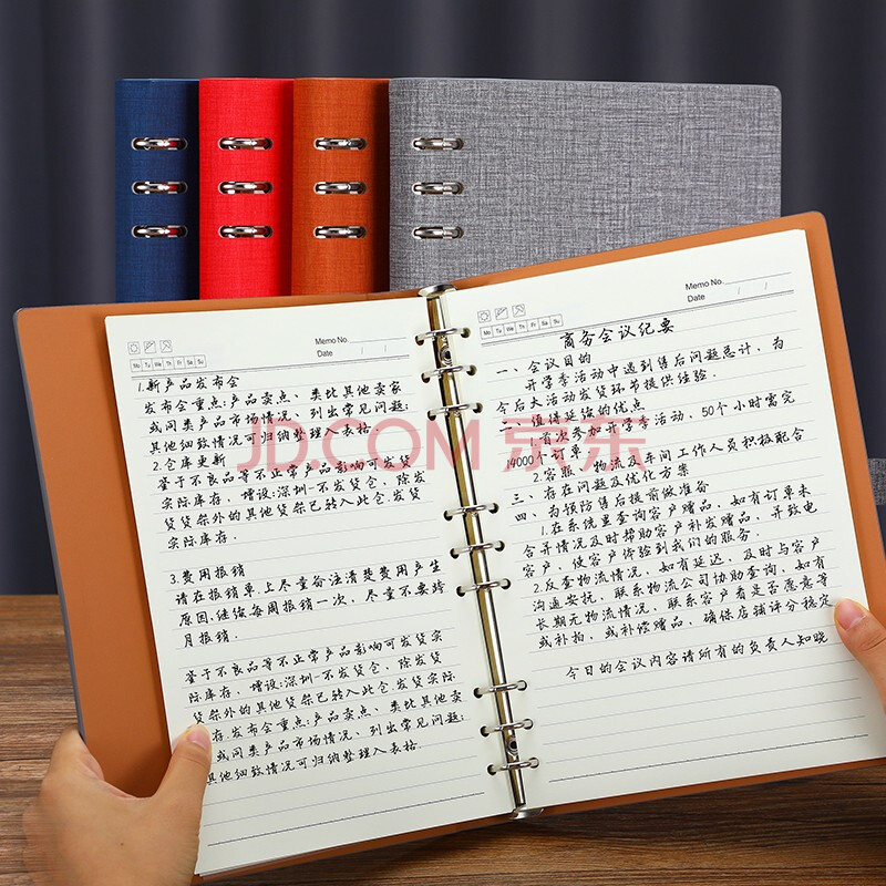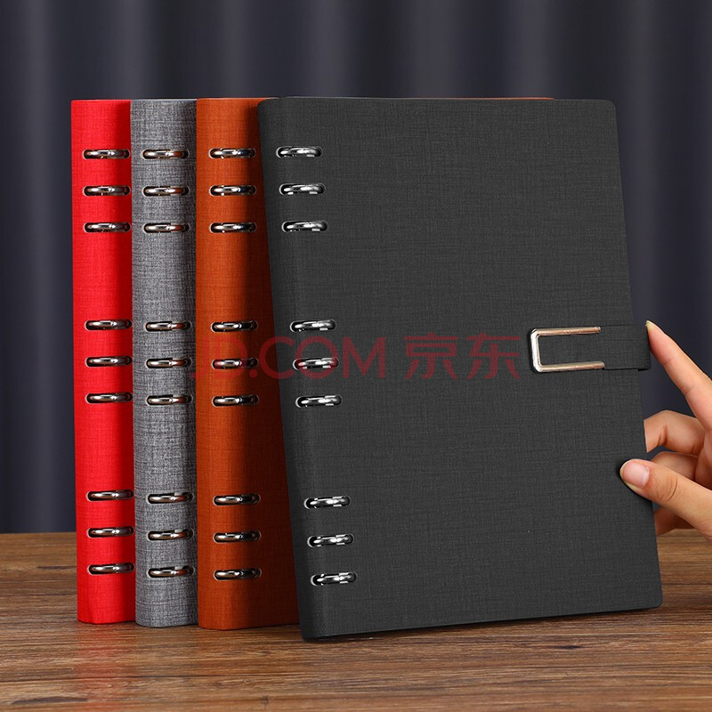 商品相册:嘉然恒 活页本B5加厚搭扣笔记本子文具简约记事本商务办公会议记录本可拆卸环扣活页学生日记本定制-黑色第
