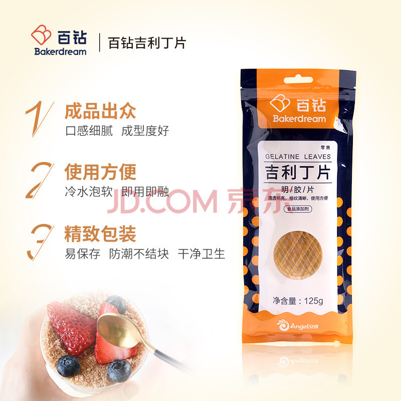 商品相册:百钻吉利丁片125g食用明胶片家用慕斯蛋糕椰蓉奶冻奶酪棒材料烘焙原料第1张/共8