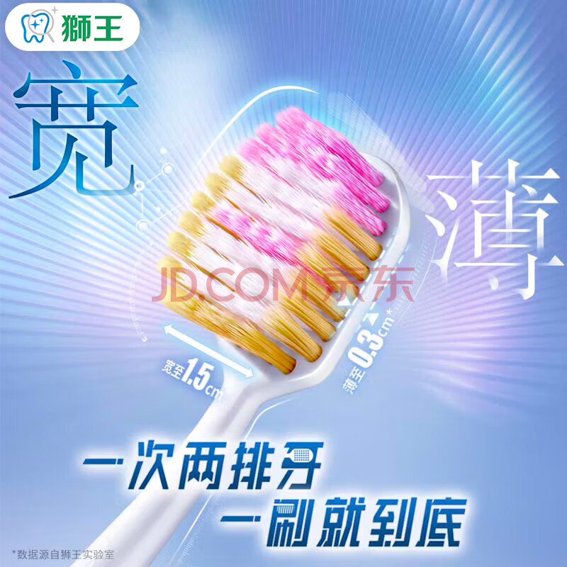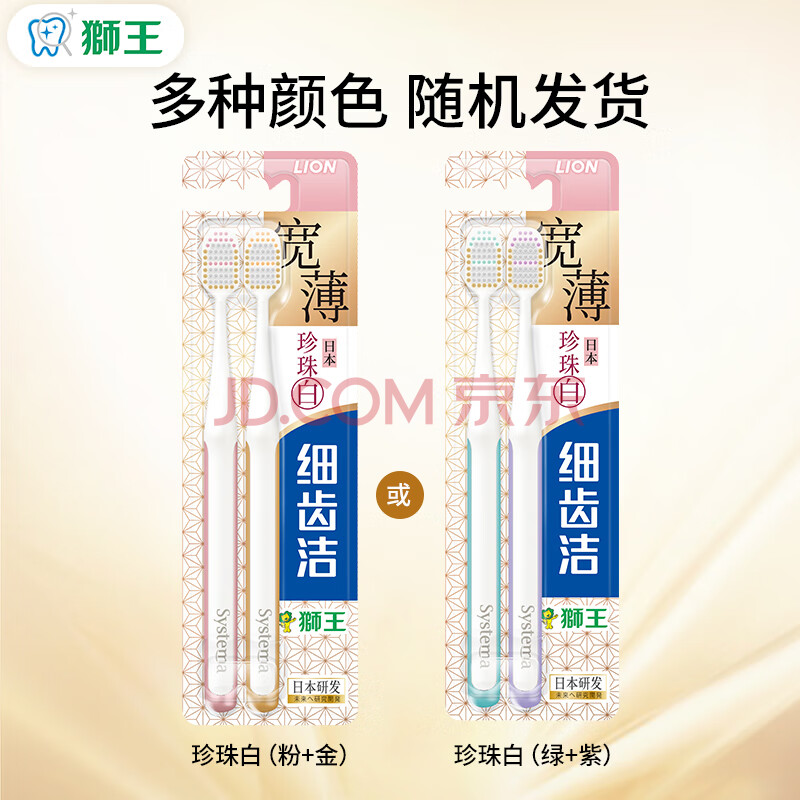 商品相册:狮王(lion)细齿洁61孔宽薄珍珠白牙刷2支装软毛深洁净智齿宽头第