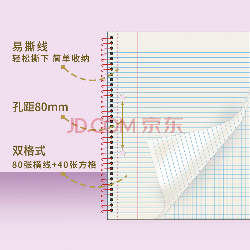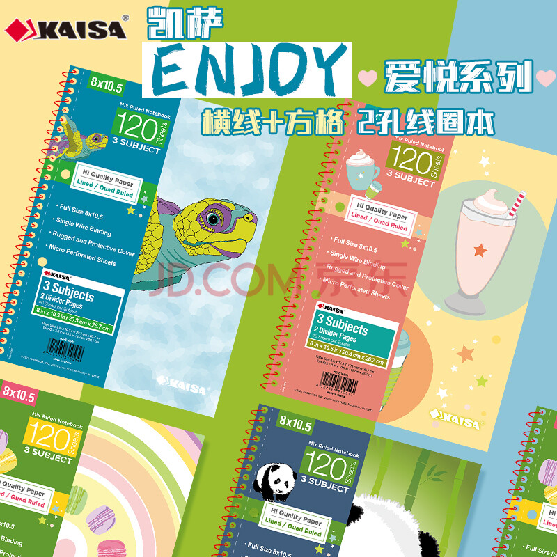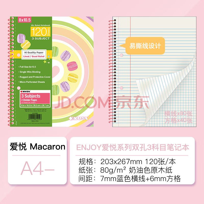 商品相册:凯萨(KAISA)两孔笔记本 120张三科目美式线圈记事本大学生考研本子 爱悦系列马卡龙日记本精装手账本第