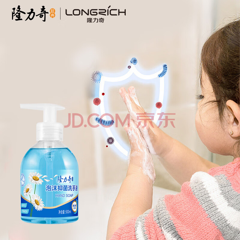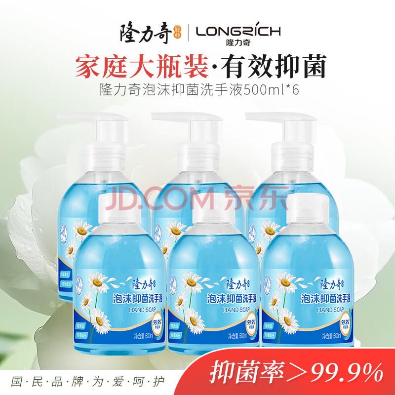 商品相册:隆力奇洋甘菊抑菌泡沫洗手液易清洗双手大瓶装500ml*6瓶第