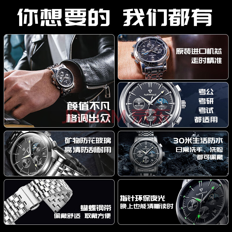 商品相册:马克华菲(MARK FAIRWHALE)阿玛妮机械风手表男士学生十大名表商务品质国表生日礼物5370第