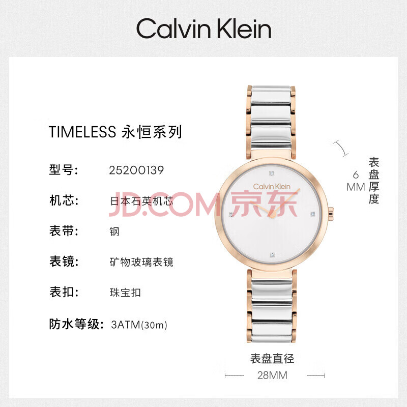 商品相册:Calvin KleinCK女表永恒系列小闪钻石英女表25200139送女友节日礼物第