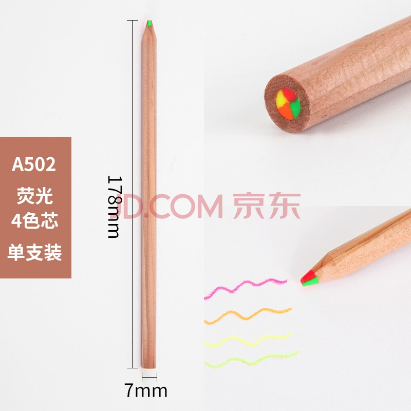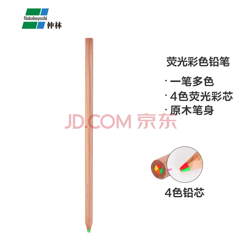 商品相册:Nakabayashi仲林彩虹铅笔多色彩芯笔一笔多色绘图标记笔 木色杆荧光4色芯第