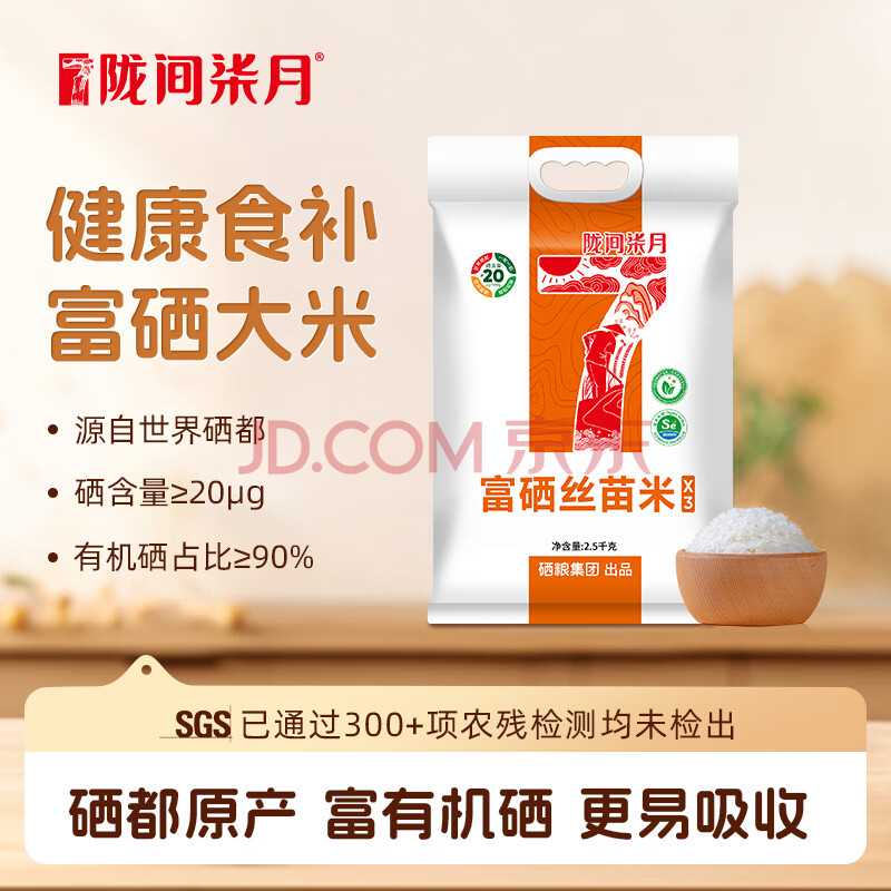 商品相册:陇间柒月富硒丝苗米2.5kg长粒籼米富有机硒认证世界硒都恩施大米5斤新米第