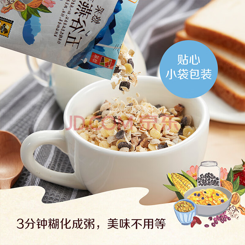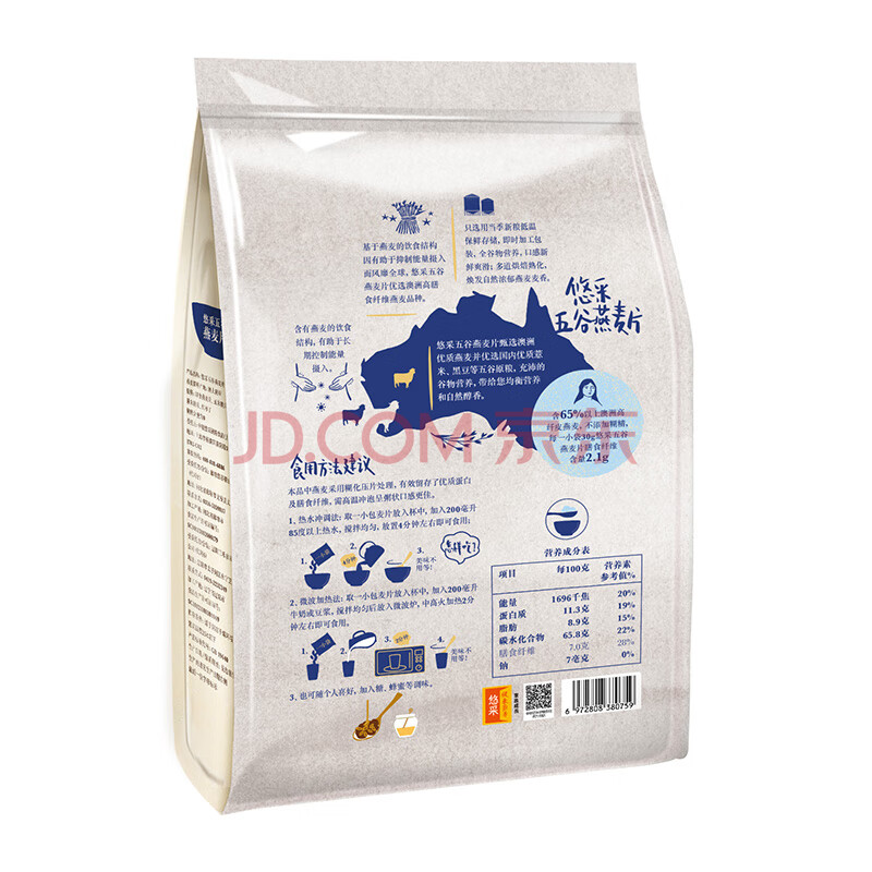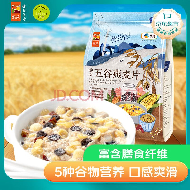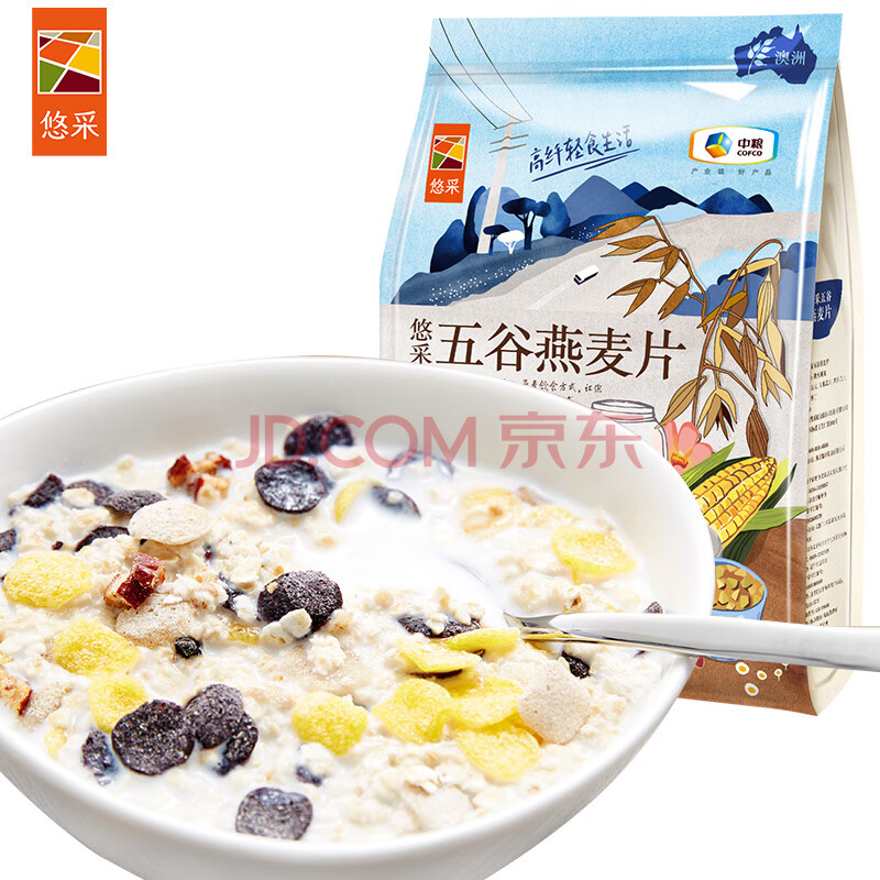 商品相册:悠采中粮五谷燕麦片600g(30g*20袋)高纤全谷物烘焙 冲泡速食代餐第