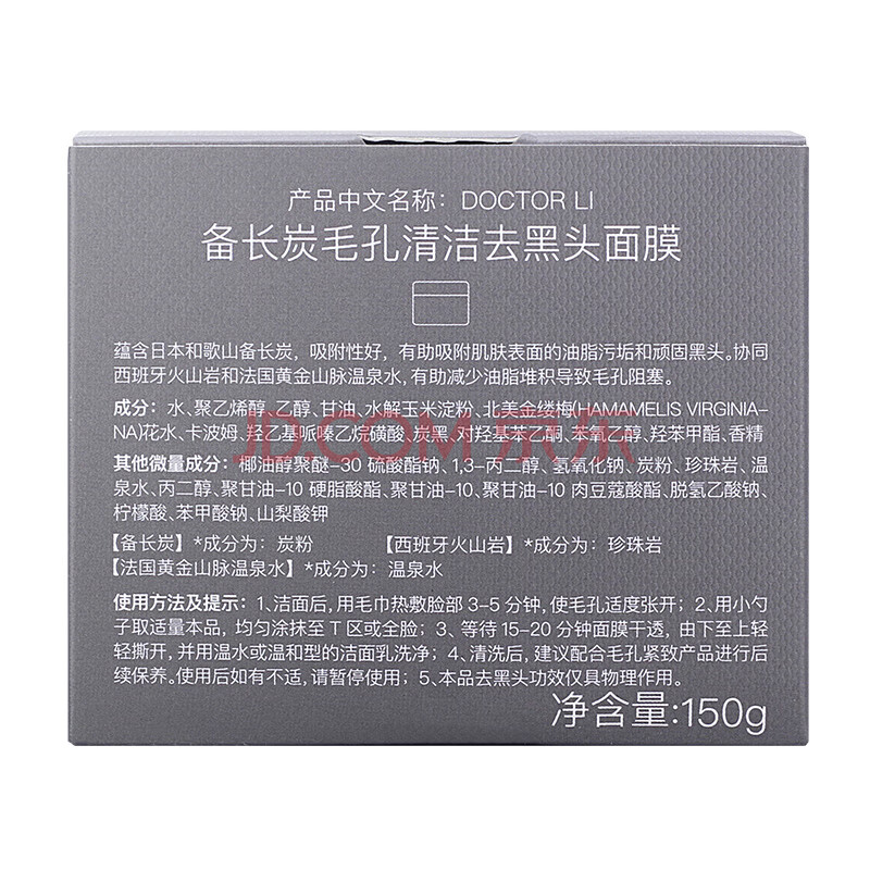 商品相册:李医生去黑头清洁泥膜备长炭撕拉面膜深层清洁毛孔粉刺男女鼻贴膜150g第