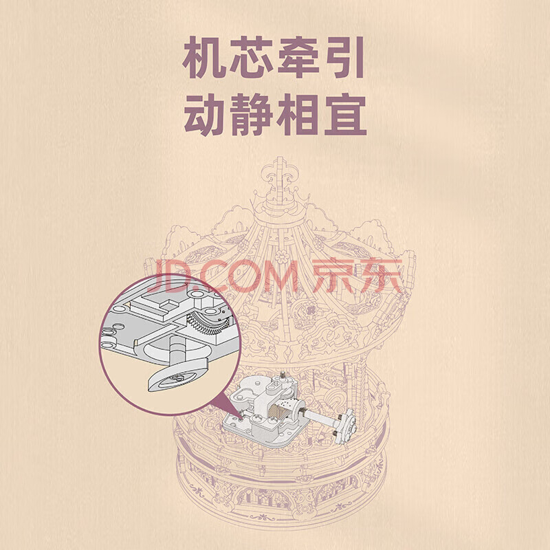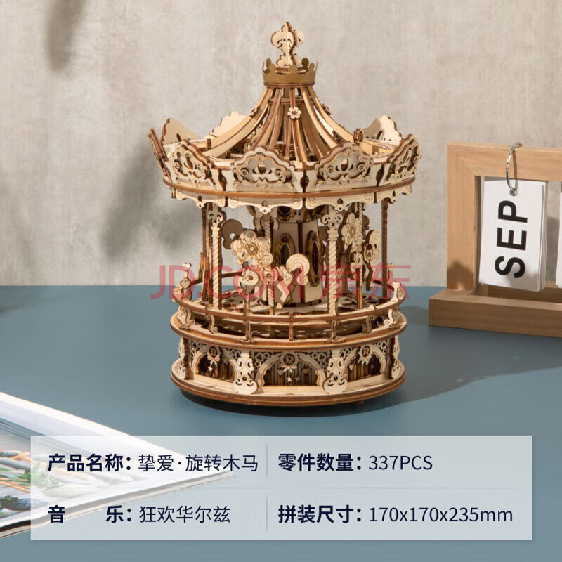 商品相册:若客(ROKR)旋转木马 八音盒音乐盒积木拼图diy手工木质拼装模型玩具生日礼物第