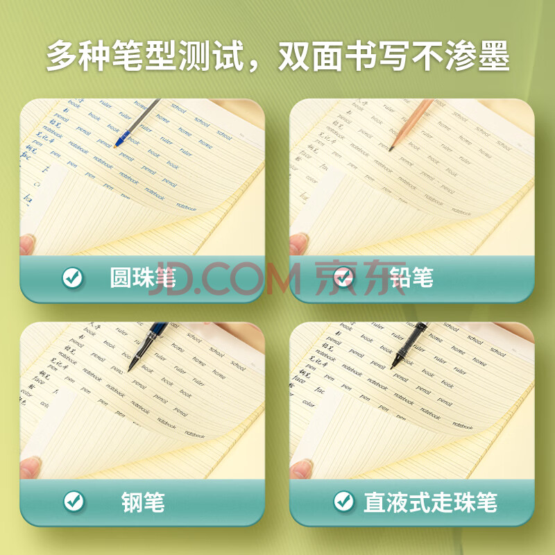 商品相册:得力(deli)护眼作业本4本装16K36张14行英语本小学生作业本软抄本笔记本子 PF1636第