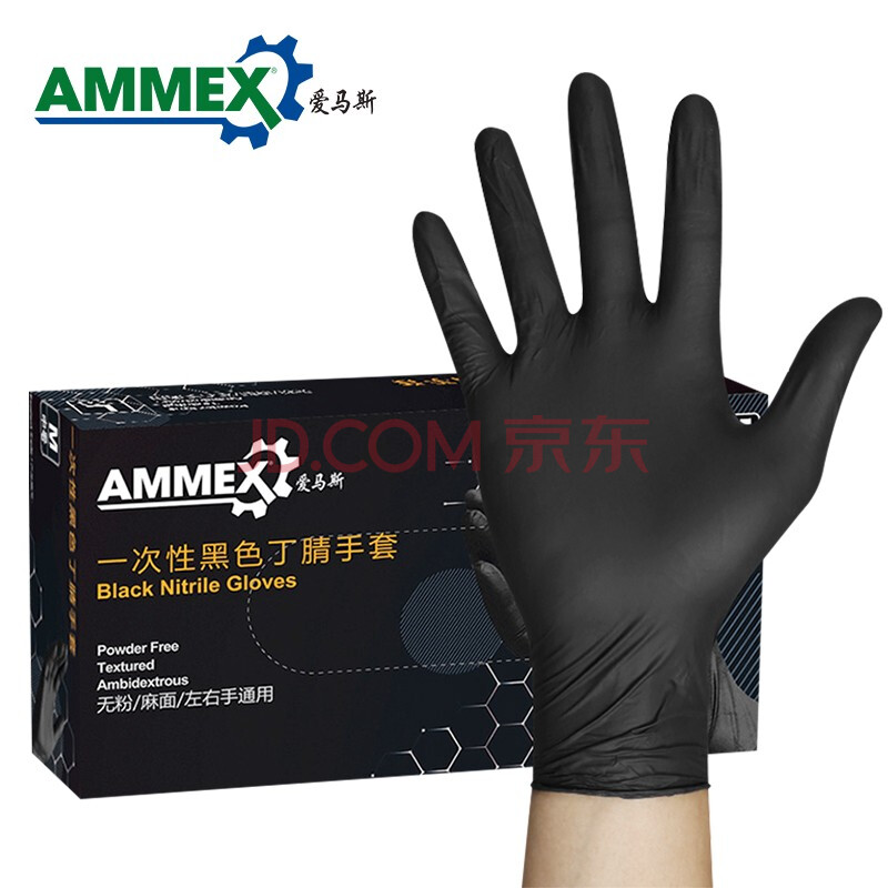 商品相册:爱马斯(AMMEX)一次性手套丁腈手套100只小号加厚耐用防水实验室检防护厨房黑色第