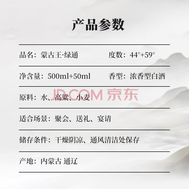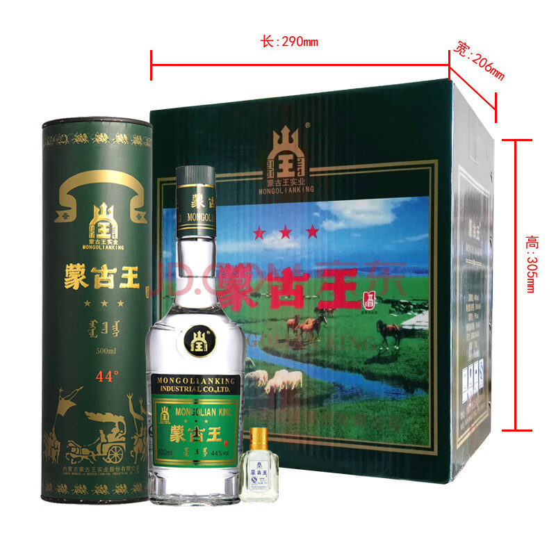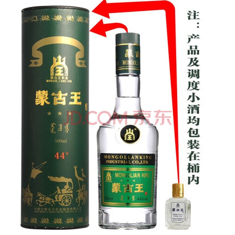 商品相册:蒙古王 白酒 浓香型粮食酒 中度白酒礼盒整箱桶装 44度调度绿桶500ml*6第