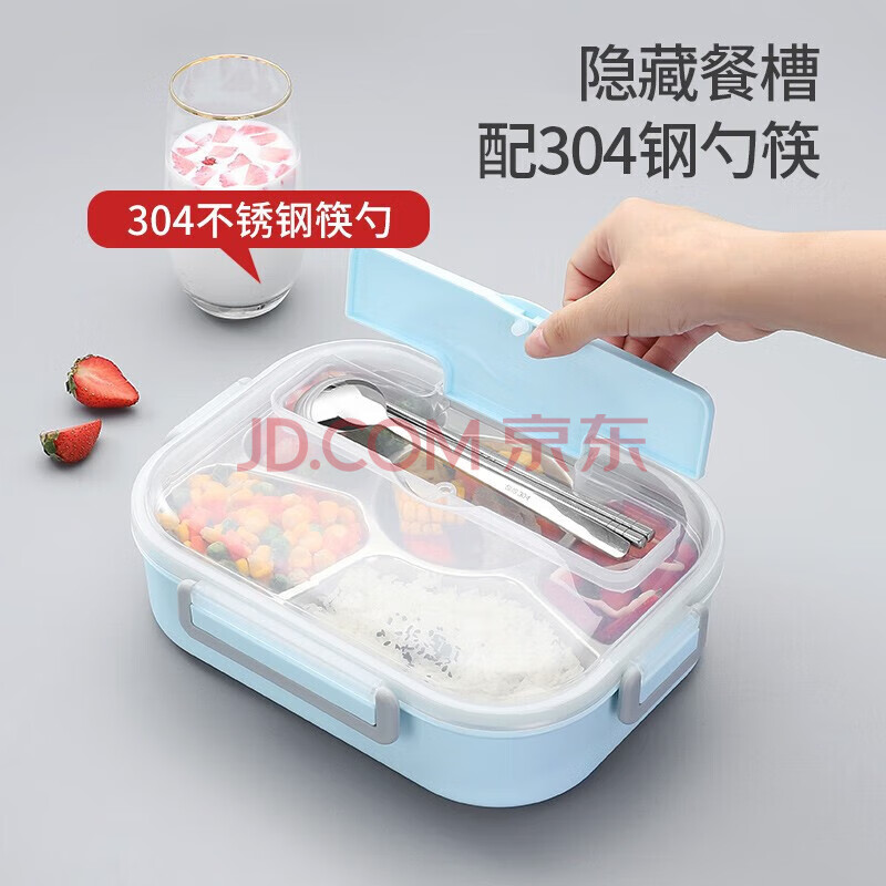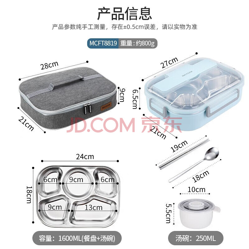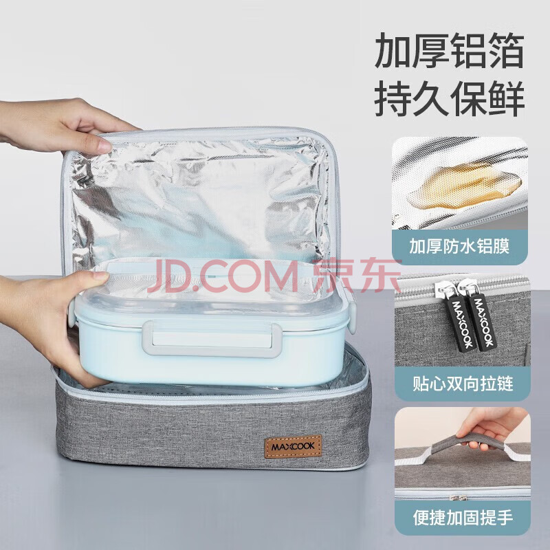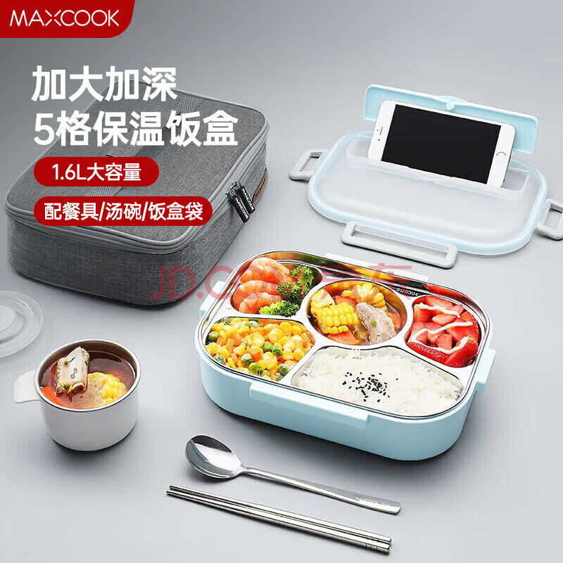商品相册:美厨(maxcook)304不锈钢饭盒 加大加深5格学生饭盒餐盘1.6L 配保温袋MCFT8819第