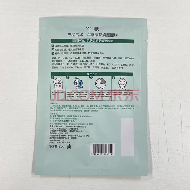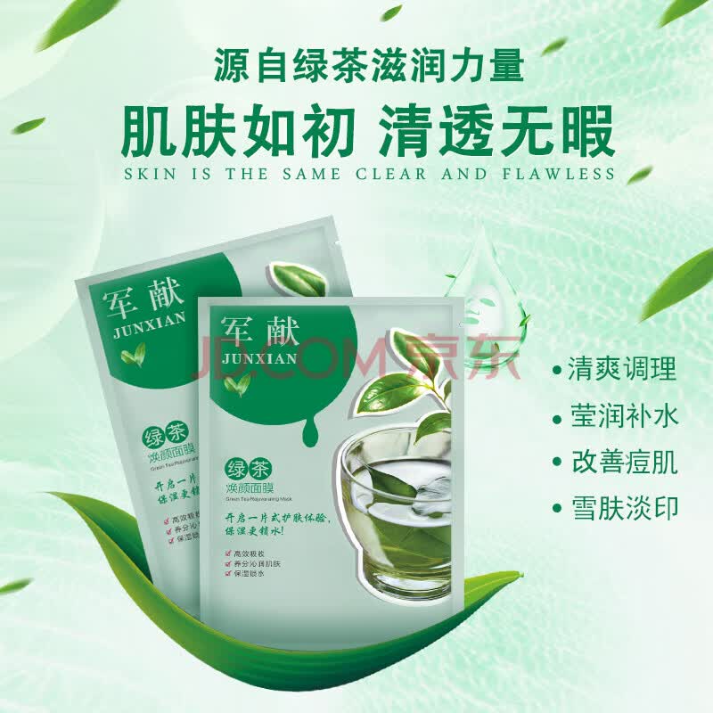 商品相册:军献 清洁面膜男女士保湿锁水调理改善护肤 绿茶面膜10片第