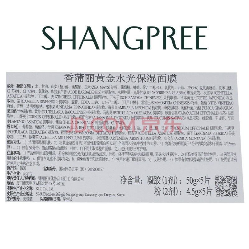 商品相册:SHANGPREE黄金水光面膜5组补水男女护肤适用 抗皱纹紧致保湿SPA 韩国进口第