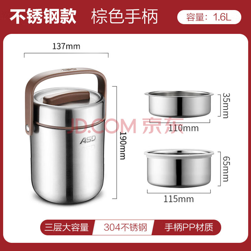 商品相册:爱仕达饭盒真空保温不锈钢保温桶学生饭盒便携便当盒不锈钢 RWS16T3WG-T第