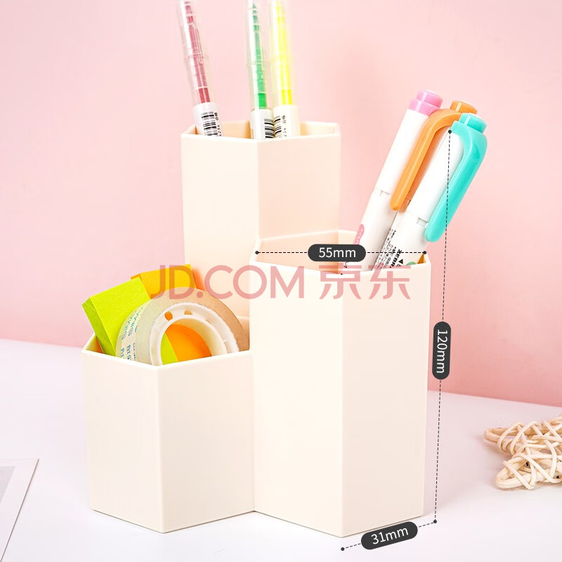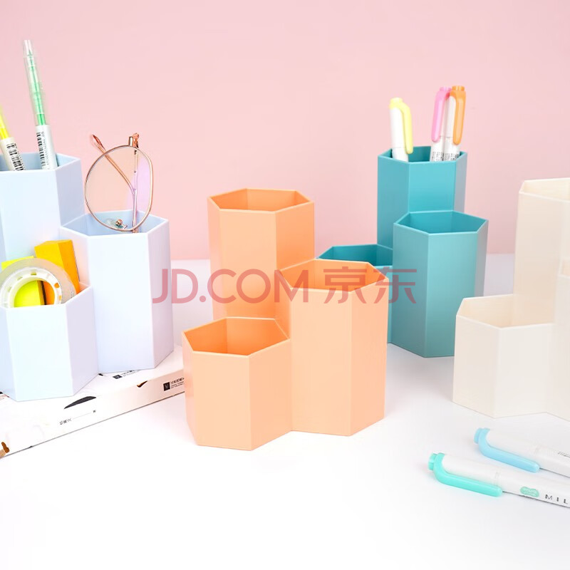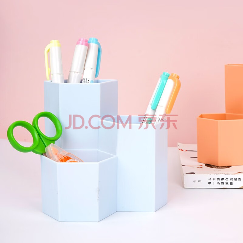 商品相册:西玛(SIMAA) 六角形笔筒 简约桌面收纳盒 文具收纳盒 橘粉色第
