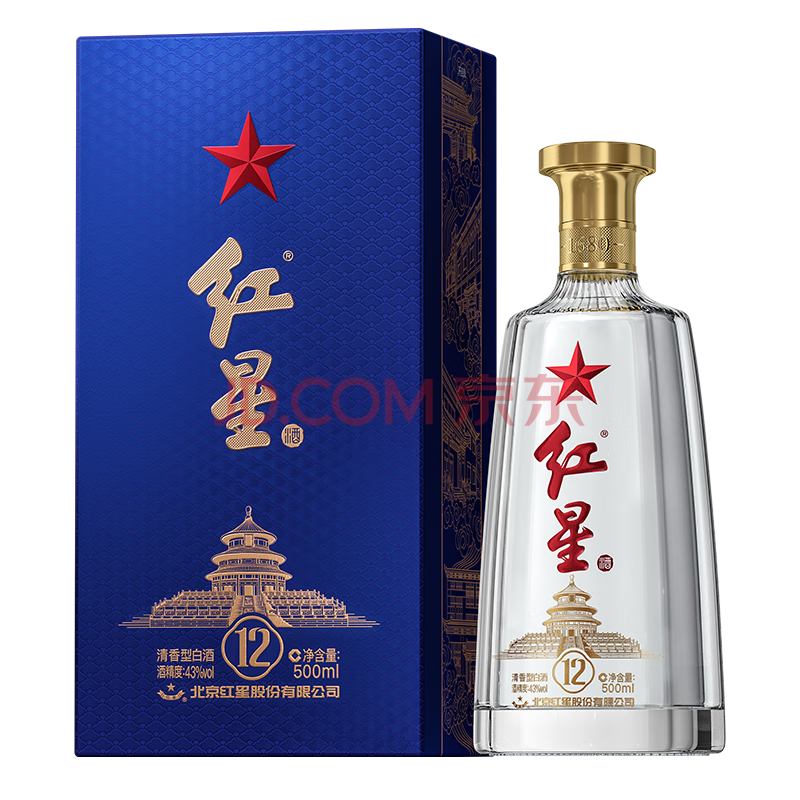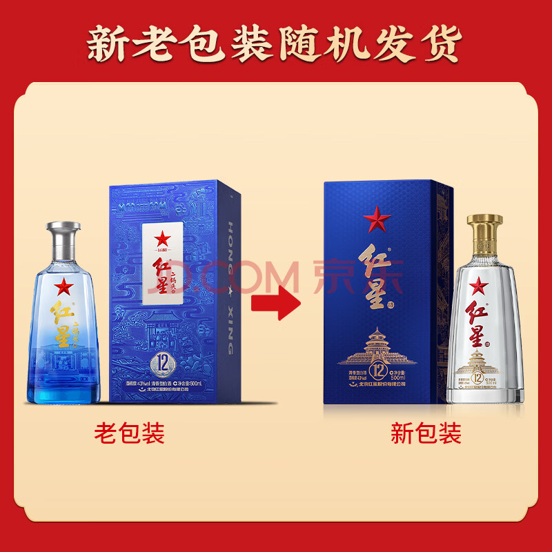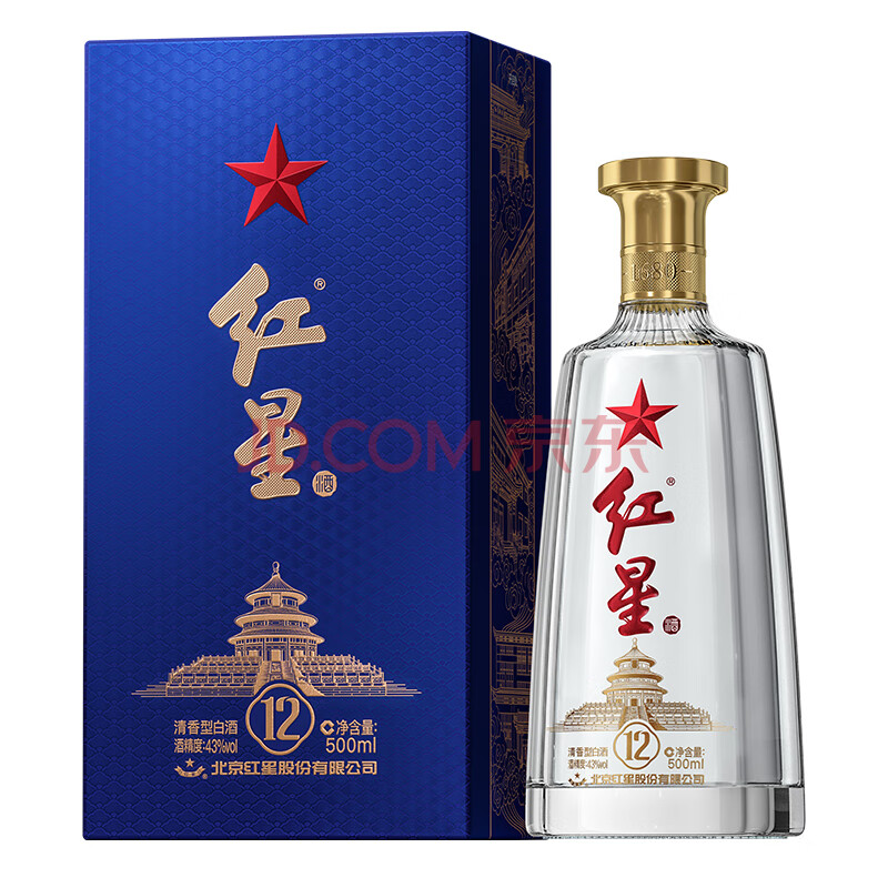 商品相册:红星二锅头 蓝盒12 清香型白酒 43度 500ml*6瓶 整箱装 新老包装随机第