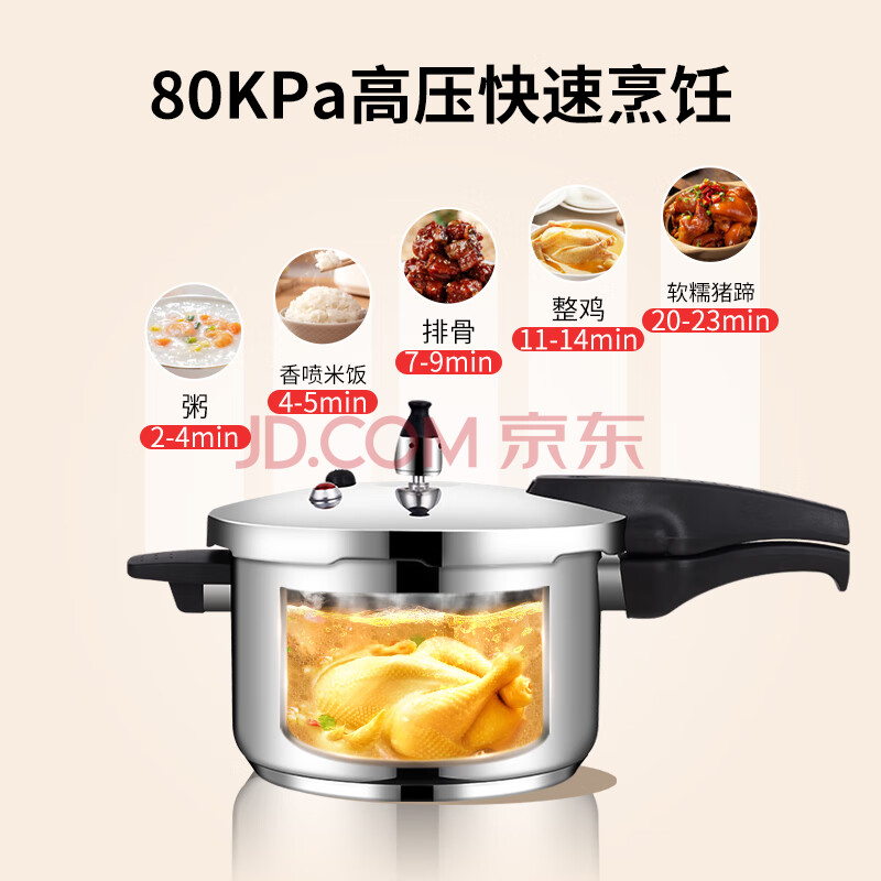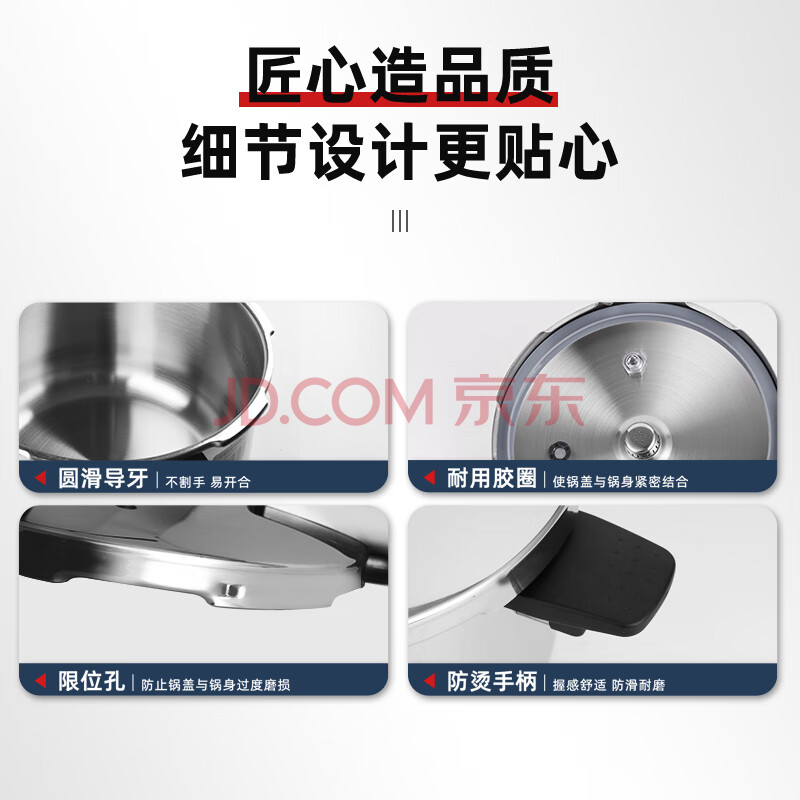 商品相册:双喜高压锅304不锈钢燃气电磁炉通用多重防爆家用快煮压力锅24cm/7L第
