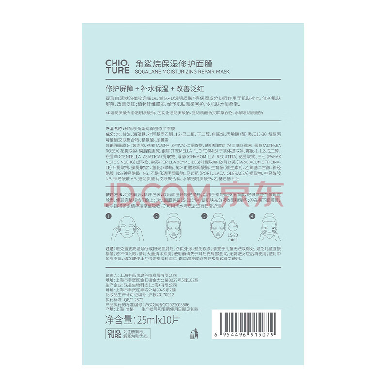 商品相册:稚优泉角鲨烷面膜30片免洗补水精华修护清洁保湿生日礼物第