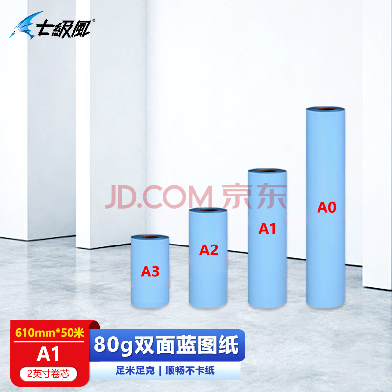 商品相册:七级风双面蓝图纸80克610mm*50米A1工程图纸适用惠普/佳能/爱普生大幅面绘图仪第