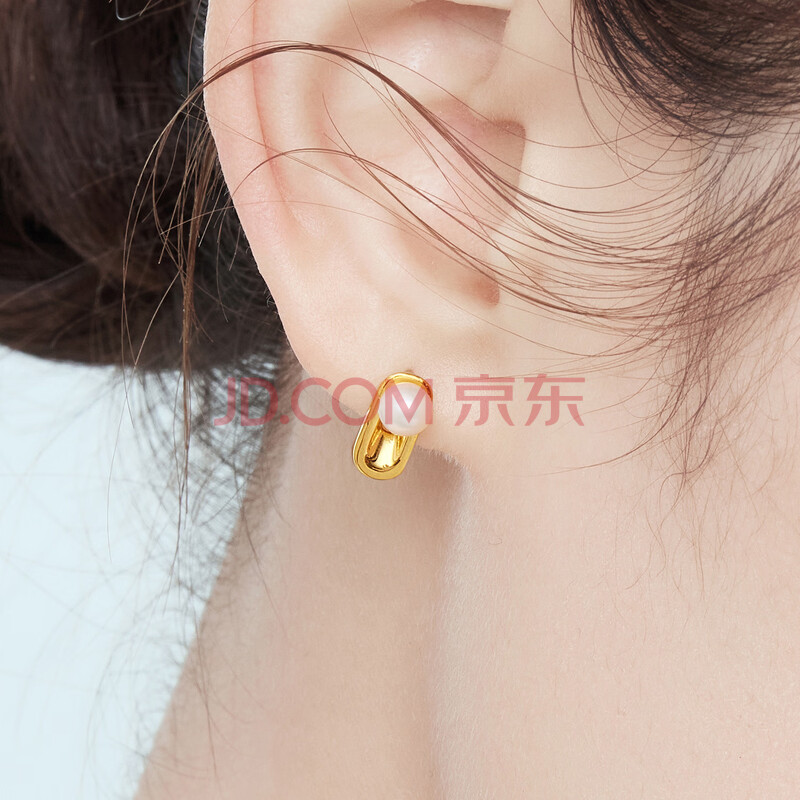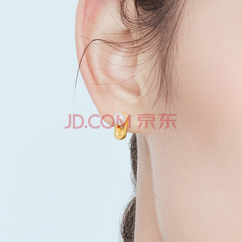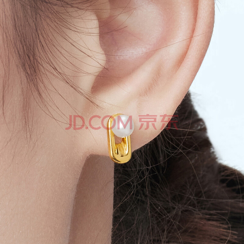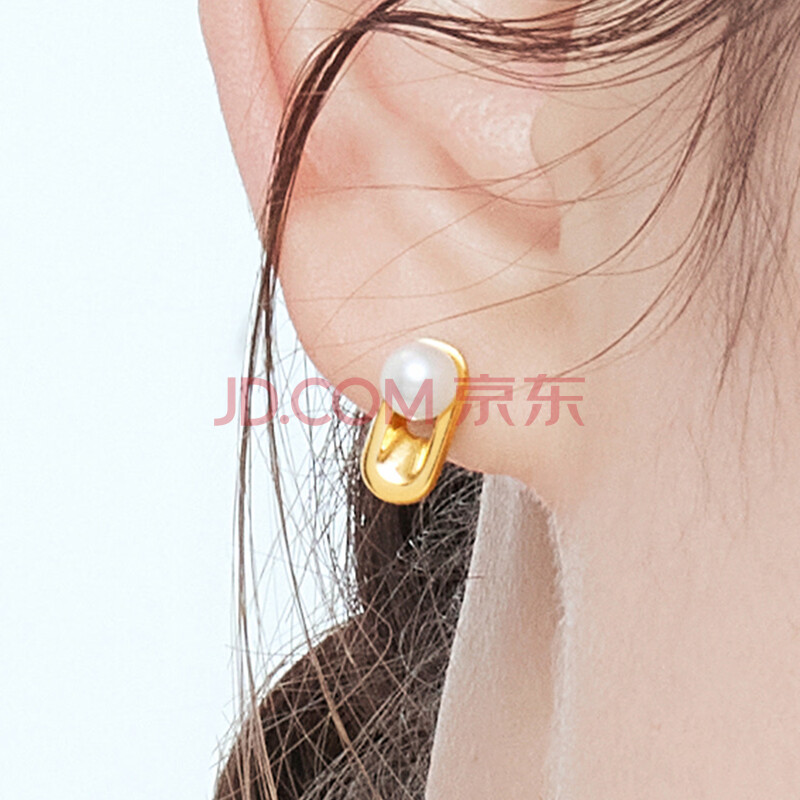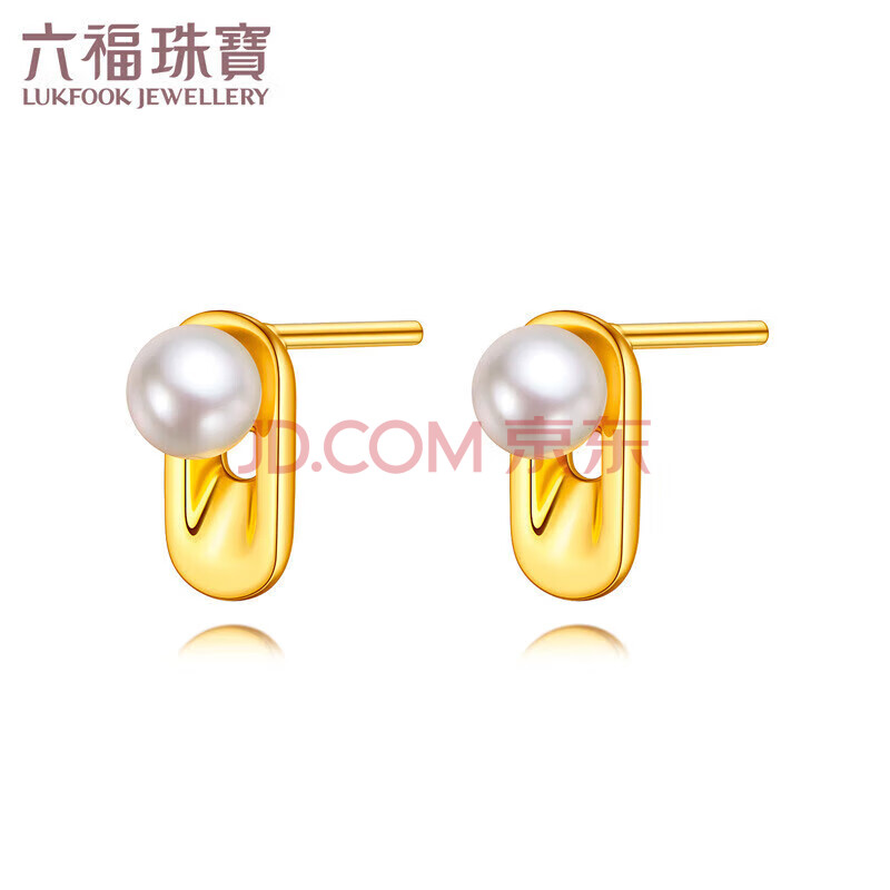 商品相册:六福珠宝 足金硬金淡水珍珠黄金耳钉 HXA1TBE0039 总重约0.83克第