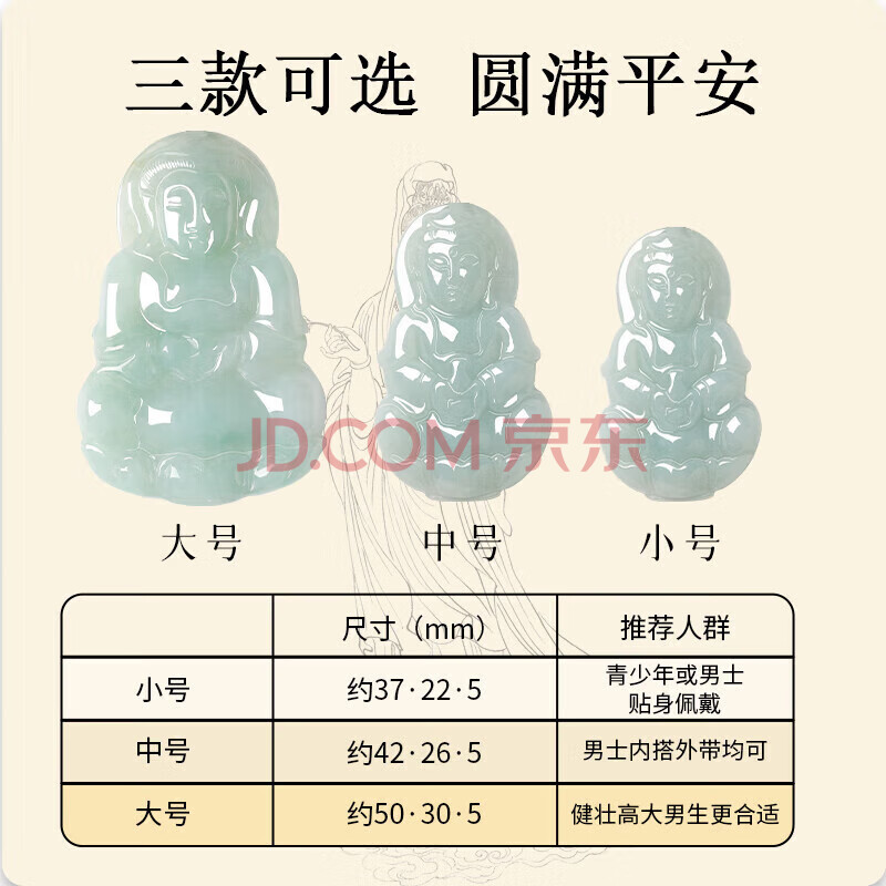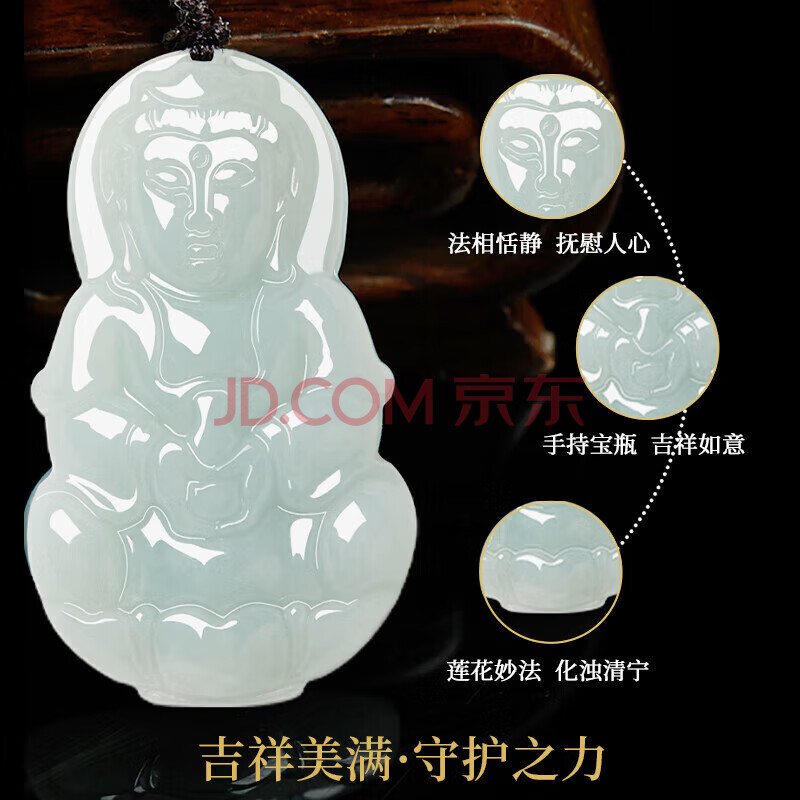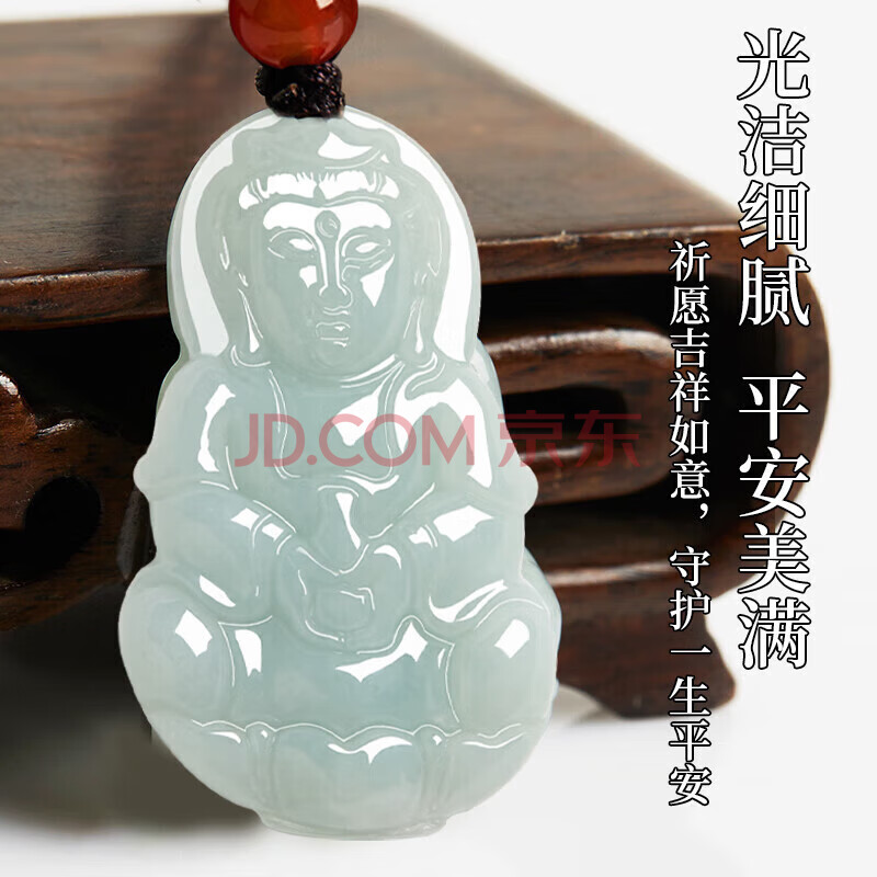 商品相册:曼丽翠糯种翡翠观音吊坠平安玉坠项链小款送男友礼物附证书第