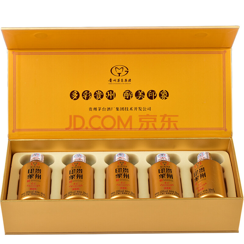 商品相册:茅台贵州印象黔景小金瓶礼盒 酱香型白酒 53度 50ml*5瓶装 第