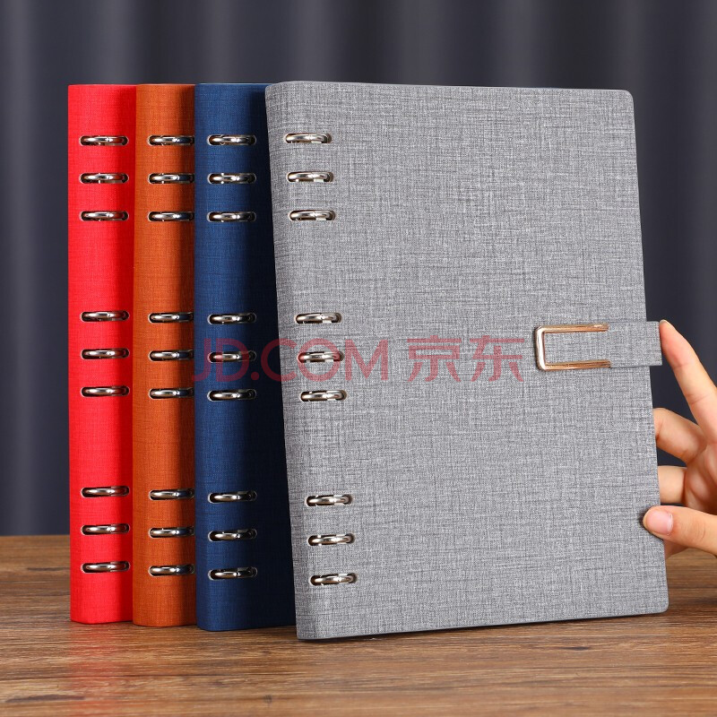 商品相册:嘉然恒 活页本B5加厚搭扣笔记本子文具简约记事本商务办公会议记录本可拆卸环扣活页学生日记本定制-灰色第