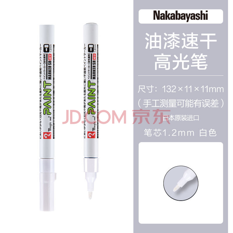 商品相册:Nakabayashi仲林油漆笔高光笔1.2mm速干涂鸦笔防水不褪色记号笔 白色单支 1.2mm第