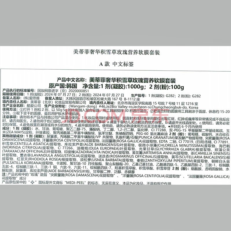 商品相册:美蒂菲(MEDI-PEEL)积雪草软膜粉面膜1100g补水保湿舒缓涂抹面膜学生送女友节日礼物第