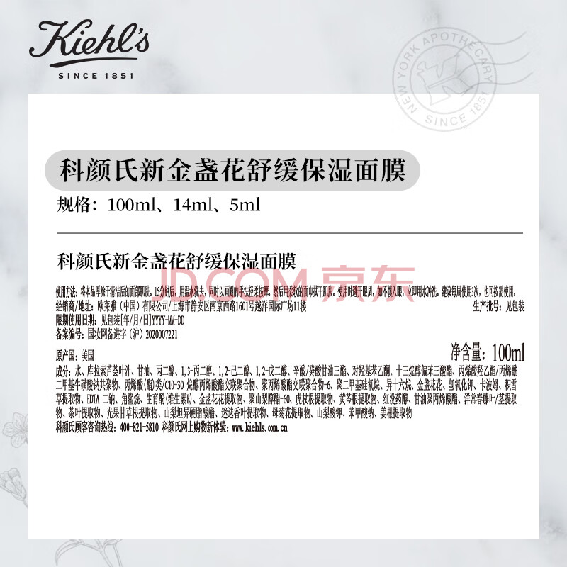 商品相册:科颜氏(Kiehl's)金盏花舒缓保湿面膜100ml 补水保湿护肤品 生日礼物第