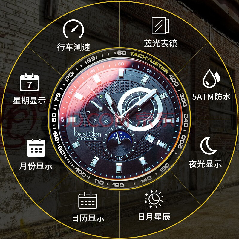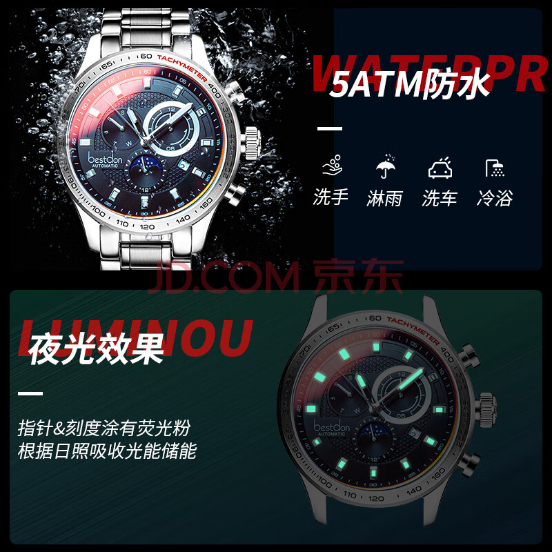 商品相册:邦顿(Bestdon)手表男自动机械表潮军表送情侣腕表礼盒男款礼物送男生第