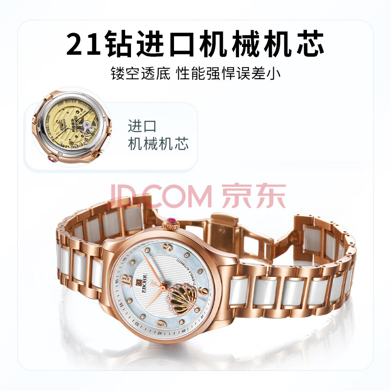 商品相册:依波(EBOHR)手表女 贝壳镂空女士机械表生日节日礼物50690121送女友第