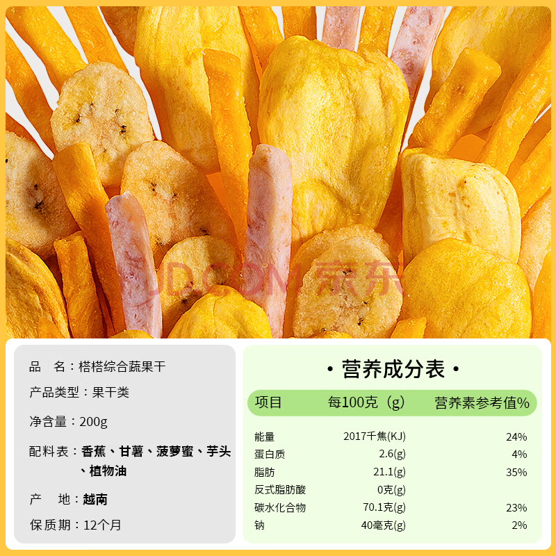 商品相册:榙榙综合蔬果干200g*2/袋 越南进口网红果蔬干脆 儿童休闲小零食第1张/共6