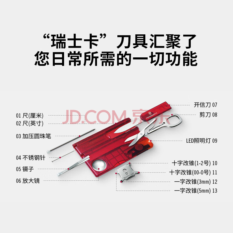 商品相册:维氏瑞士军刀13项多功能水果刀刀折叠刀照明瑞士卡黑色0.7333.T3第