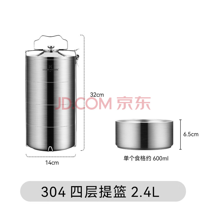 商品相册:金钥匙(GOLDEN KEY)304不锈钢至尚2.4L四层保温饭盒提篮分层便当盒GK-TL2400-4第