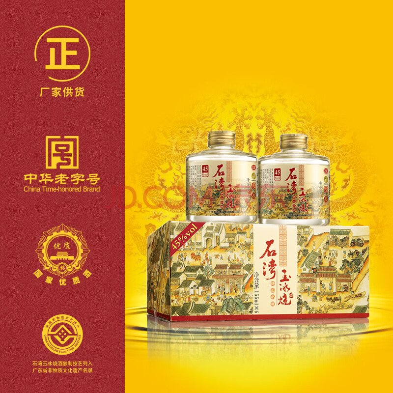 商品相册:石湾玉冰烧 清雅型 45度佛山小酒155ml*6瓶 礼盒 白酒 微黄 纯粮第