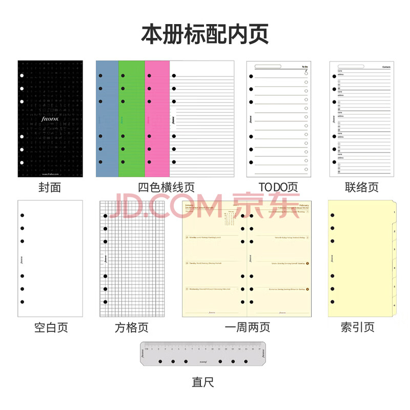 商品相册:Filofax记事本英国进口高档笔记本真牛皮荔枝纹活页手帐本礼盒装finsbury系列A7石灰色029512第