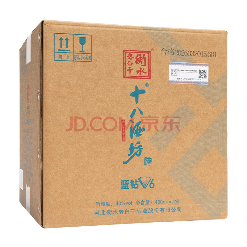 商品相册:十八酒坊衡水老白干 蓝钻V6 老白干香型白酒 40度480ml*4瓶 整箱 口粮送礼第