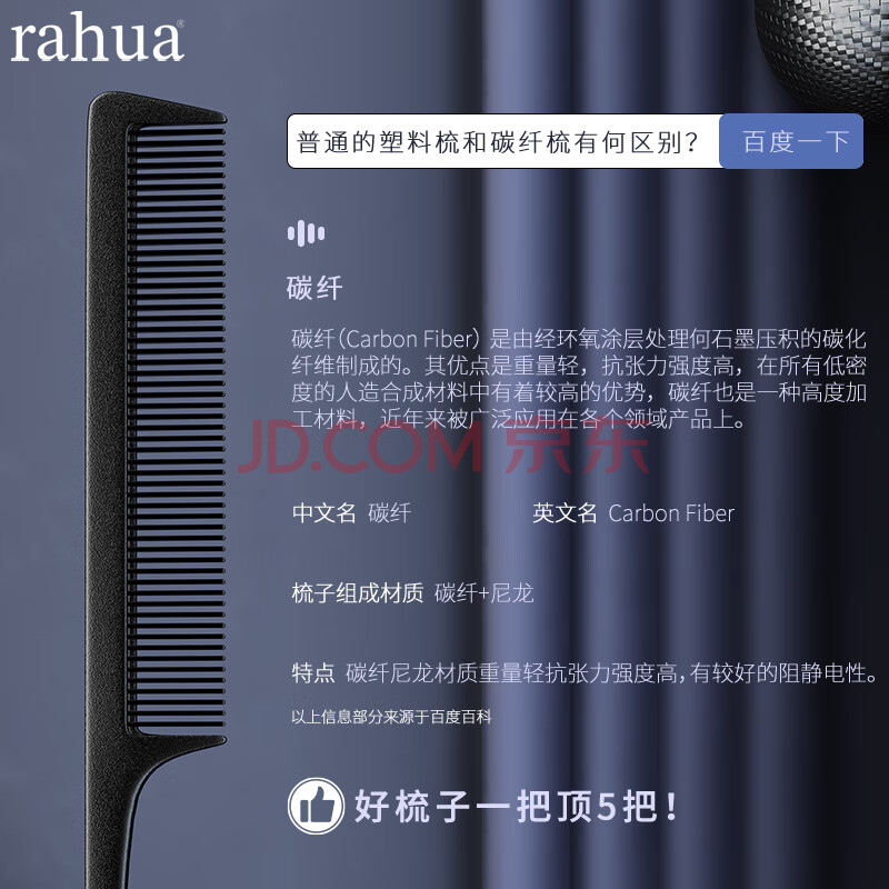 商品相册:紫韵梳香尖尾梳子碳纤尼龙无惧静电 挑梳理发梳尖头梳美发编发分发梳 N-3第