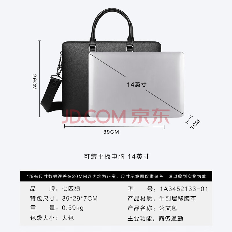 商品相册:七匹狼男士商务公文包行政出差电脑包14英寸多功能手提包时尚节日礼物第
