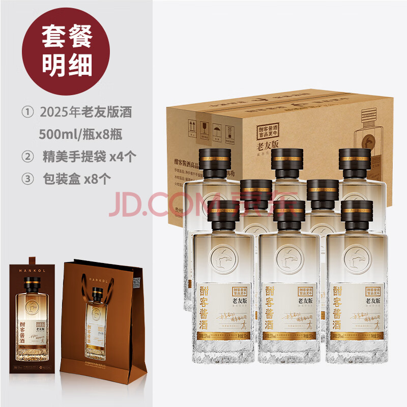 商品相册:酣客老友版 53度酱香型白酒大曲酱酒 500ml*8 整箱装 送礼白酒第