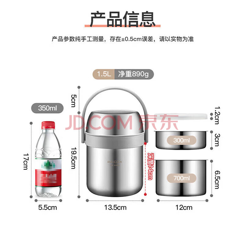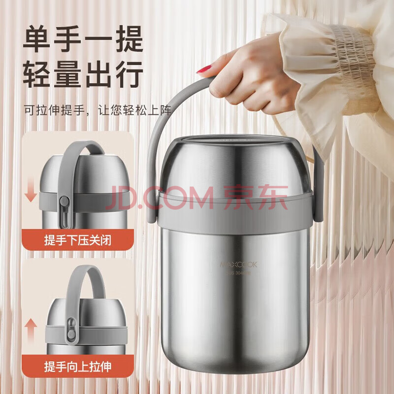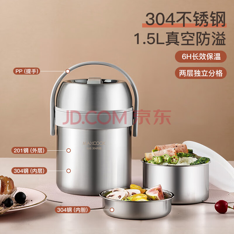 商品相册:美厨(maxcook)304不锈钢保温饭盒提锅1.5L 真空双层保温桶学生饭盒 MCTG0164第