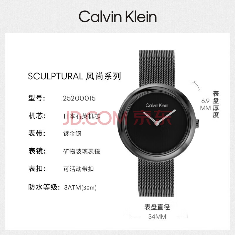 商品相册:Calvin KleinCK手表小圆盘钢带石英女表女神节新年礼物女25200015第