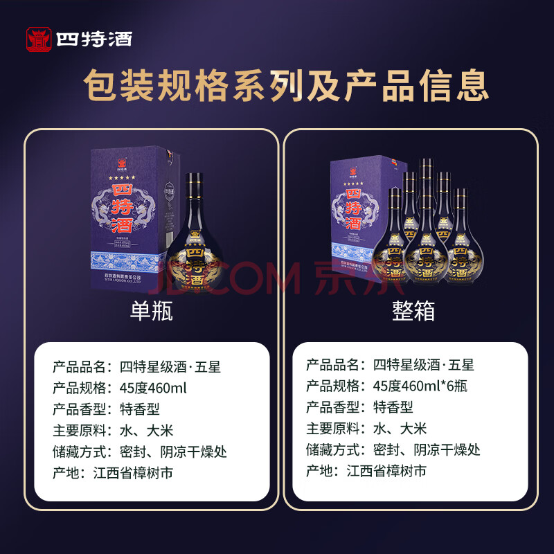商品相册:四特酒 星级酒 五星 特香型白酒 45度 460ml单瓶装(无礼袋)第